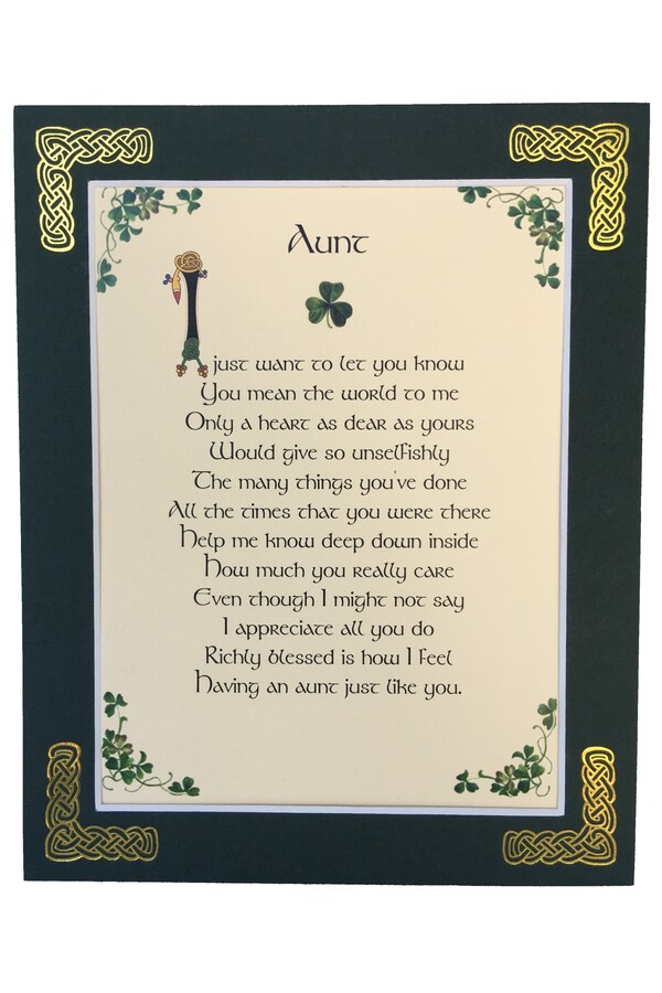 Features - Our blessings are printed on ivory card and are presented in a forest green matting with gold Celtic knots embossed on the corners. Presented in a clear with a craft card backing in a resealable bag.